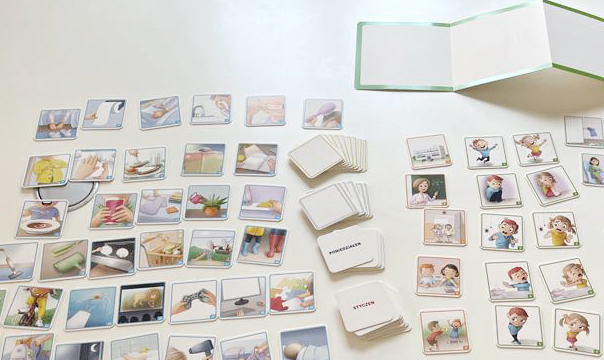 Karty obrazkowe z aktywnościami dnia codziennego.