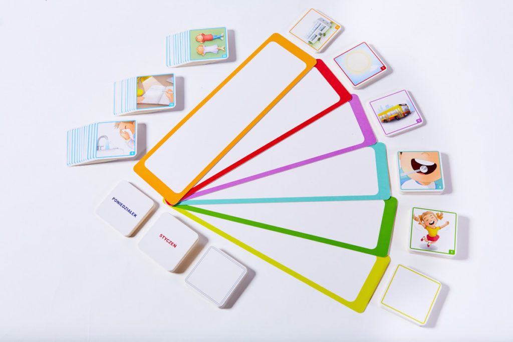 Puste tablice na umieszczenie piktogramów, czyli obrazków z aktywnościami dnia codziennego.